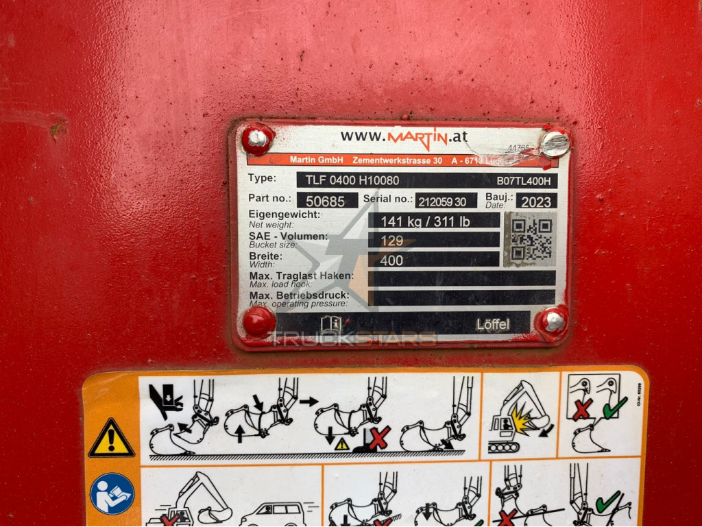 Bagr má nadstandartní výbavu - Tiltrotátor MARTIN 360 ,příplatkové joysticky endcon, 4 x hydr. okruh, mimoosé kopání , K bagru celkem 5 lžic, led osvětlení , klimatizace .
